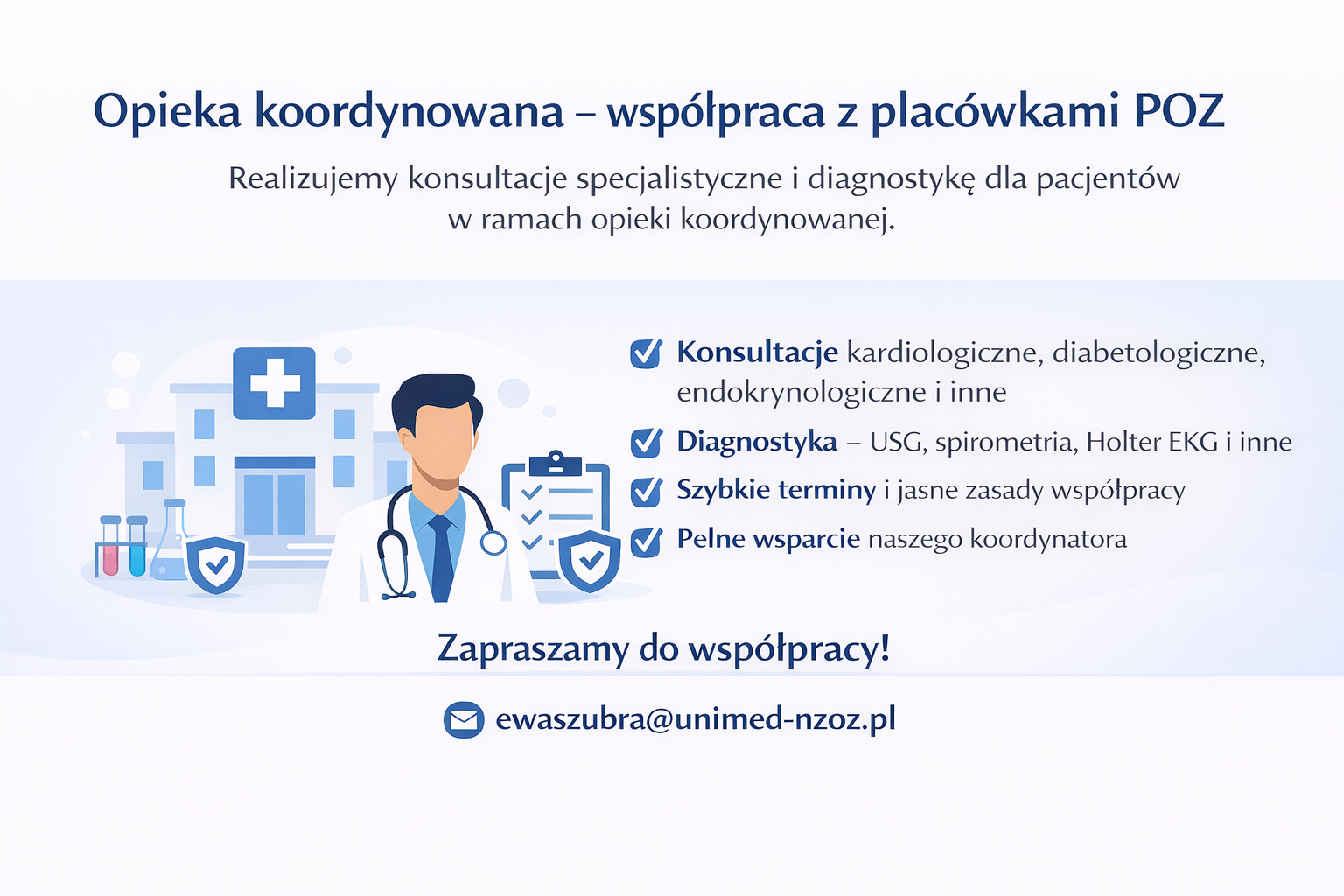 Centrum Medyczne UNIMED oferuje placówkom podstawowej opieki zdrowotnej możliwość współpracy w zakresie realizacji świadczeń w ramach opieki koordynowanej POZ.