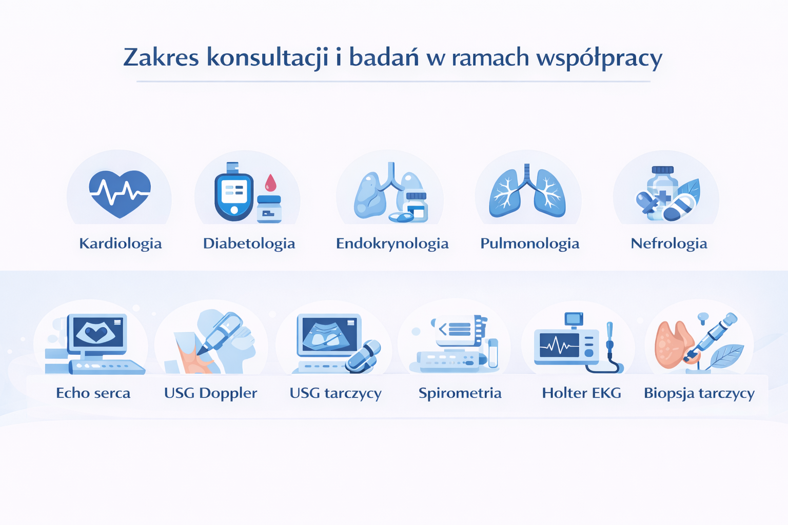 Zakres świadczeń jest zgodny z możliwościami diagnostycznymi placówki oraz potrzebami pacjentów kierowanych w ramach opieki koordynowanej.